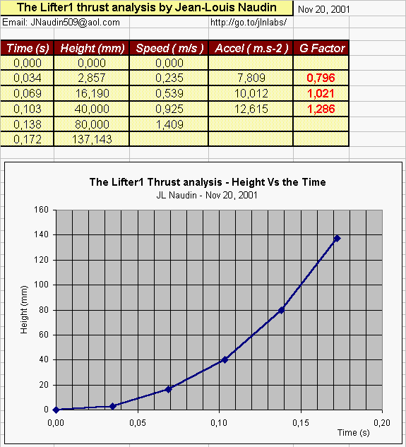 The purpose of this experiment is to measure the parameters such as the speed, the acceleration and the G Factor during the Lift Off of the Lifter1.