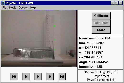 The Lift Off datas have been collected from a recorded movie. I have used the motion video data analysis freeware program, PhysVis version 1.4.1. PhysVis is a freeware wrote at the Department of Physics at Kenyon College by David Cowart. You will find below a screenshot of this motion video program in action during the Lifter1 motion analysis.