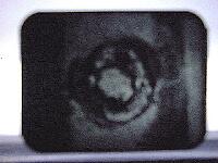 A close up of the developped photo reveals the radiation emissions in the X-ray band. The exposure time was 8 minutes, with the photo in close proximity to the aluminium foil of the lifter, powered at about 50 Watts/ 30kV. As can be seen, the rays have penetrated through the 2mm stainless steel washers in many parts.