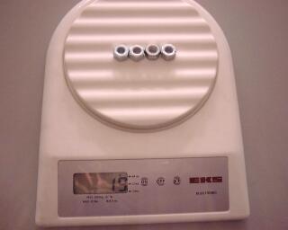 being calculated by adding weights in a plastic container glued