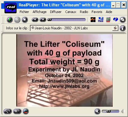 See the video of the 90 g Lifter "Coliseum" with its 40 g of payload